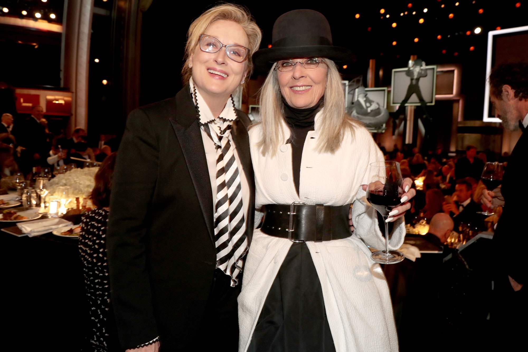 Ninguém tem um estilo mais próprio de vestir do que Diane Keaton. Desde sempre, descobrimos que o jeito meio masculino de Annie Hall era na verdade o estilo da própria atriz. E no seu dia de homenageada, Diane foi mais Diane do que nunca. Dê uma olhada no modelito. Ela pode!
